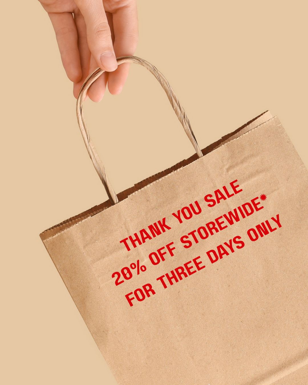 20% Off Storewide* for three days only — Friday 28th, Saturday 29th & Sunday 30th November 2025.