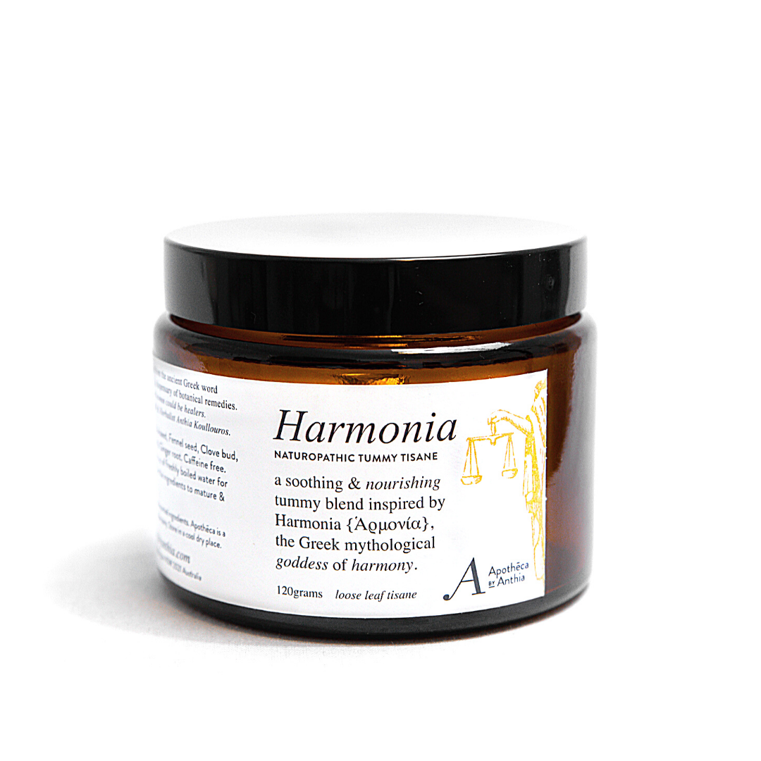 A soothing & nourishing tummy blend inspired by Harmonia {Ἁρμονία}, the Greek mythological goddess of harmony.