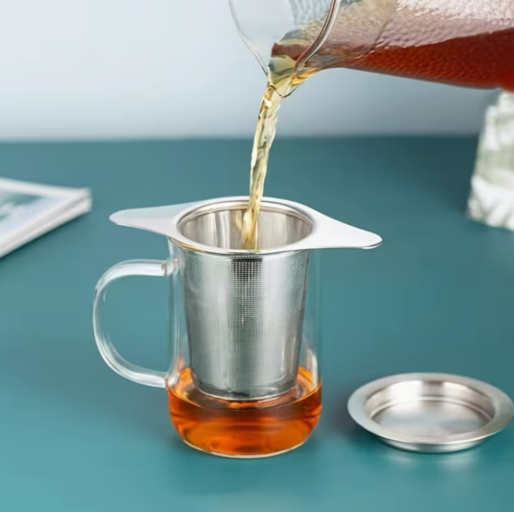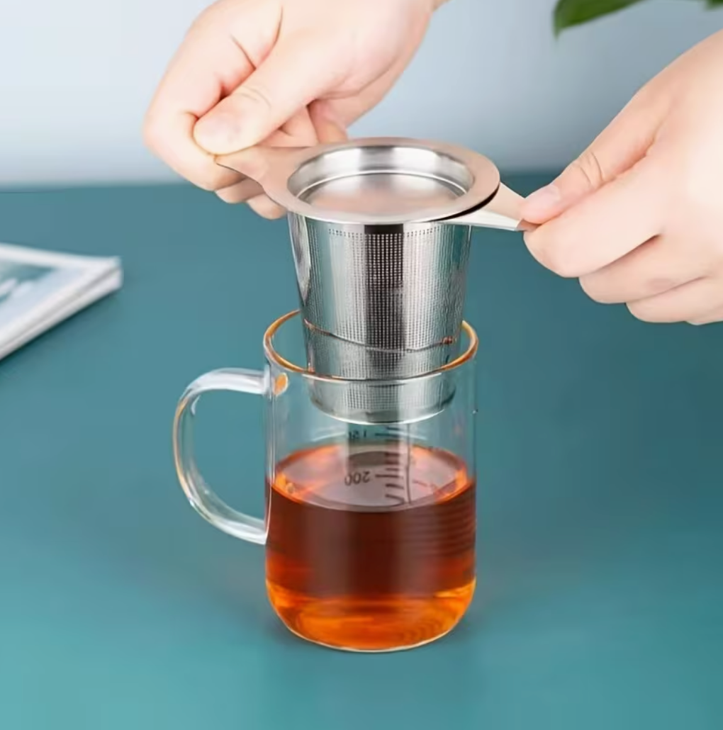 The integrated side handles make it easy to rest securely over most cups and mugs, while the lid helps retain heat during steeping and keeps surfaces clean after use.
