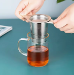 A thoughtfully designed stainless steel tea infuser and strainer, ideal for loose-leaf teas and generous herbal infusions.