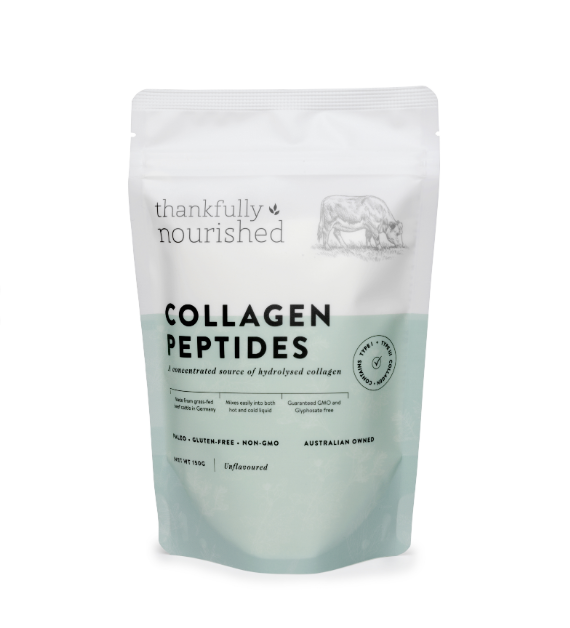 Thankfully Nourished Collagen Peptides are a concentrated source of hydrolysed collagen, providing you with the protein and amino acids needed for tissue building and repair. Thankfully Nourished Collagen is not just a generic collagen! It has been enzymatically fermented into peptides with a specific molecular weight that is targeted and more bioavailable. This means you don’t need as much as other generic collagens on the market.