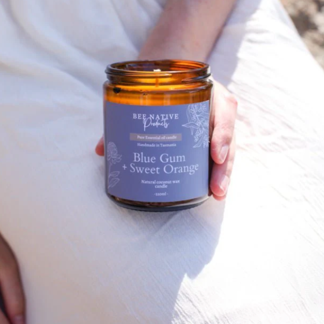 Blue Gum & Sweet Orange Essential oil Candle - 220ml Amber Glass Jar