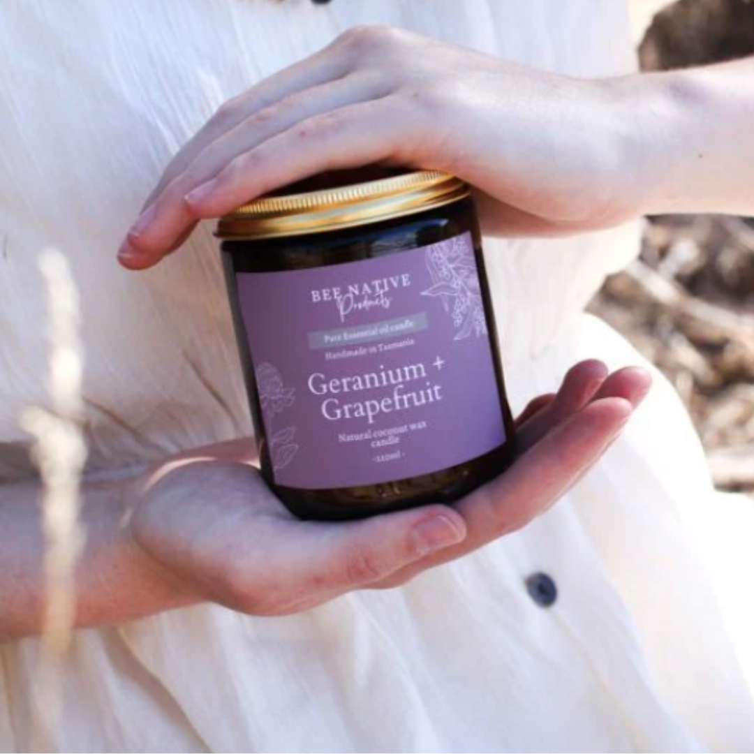 Geranium & Grapefruit Essential Oil Candle - 220ml Amber Glass Jar